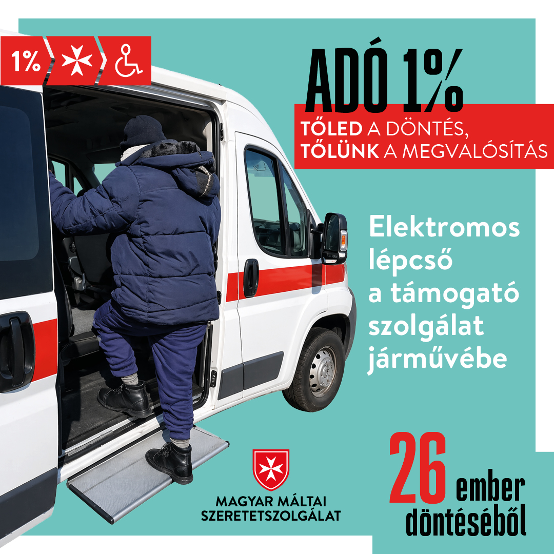 A 2025-ben felajánlott adó 1%-oknak köszönhetően szolgálatunk kisbuszát elektromos lépcsőfelszereléssel korszerűsítettük.